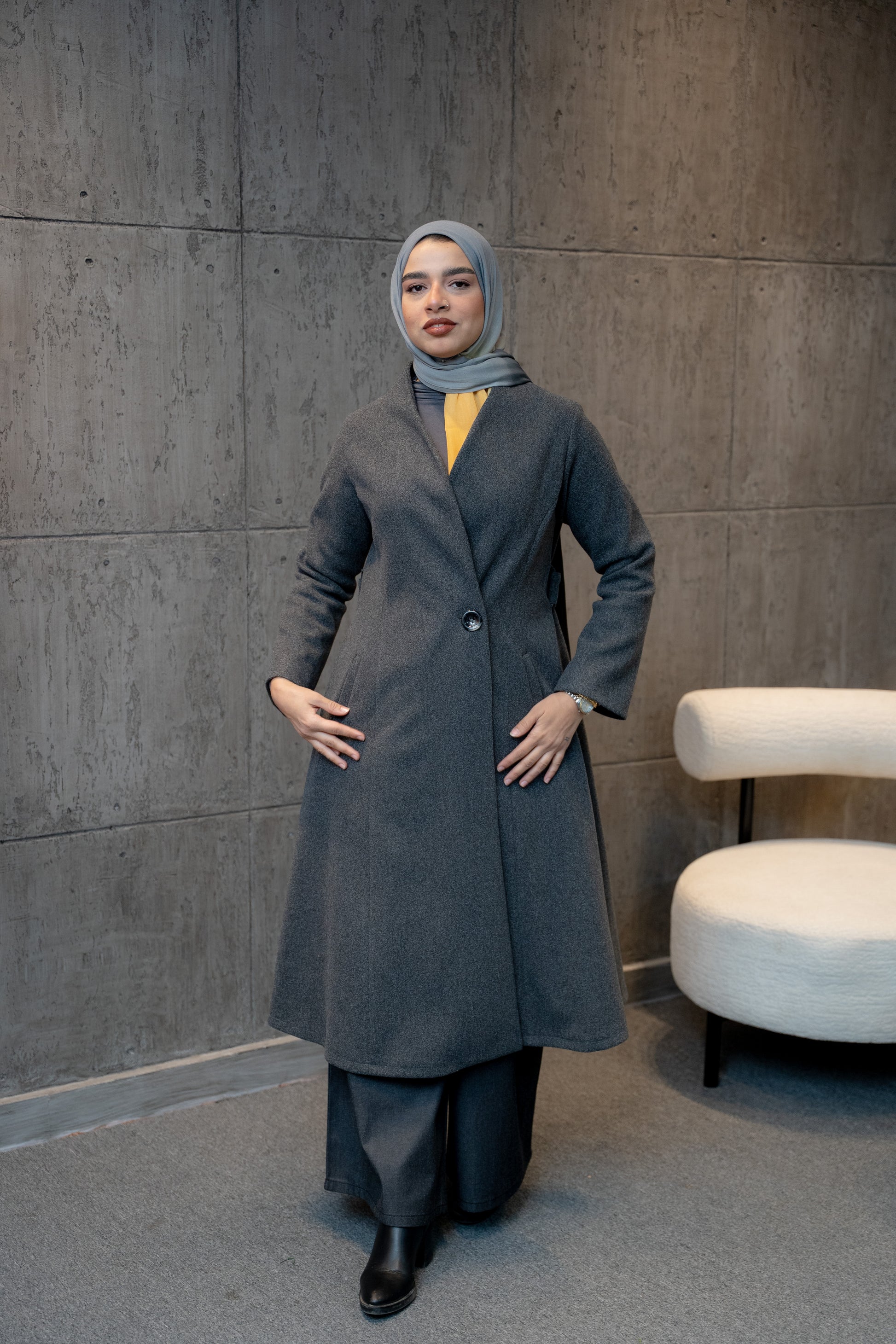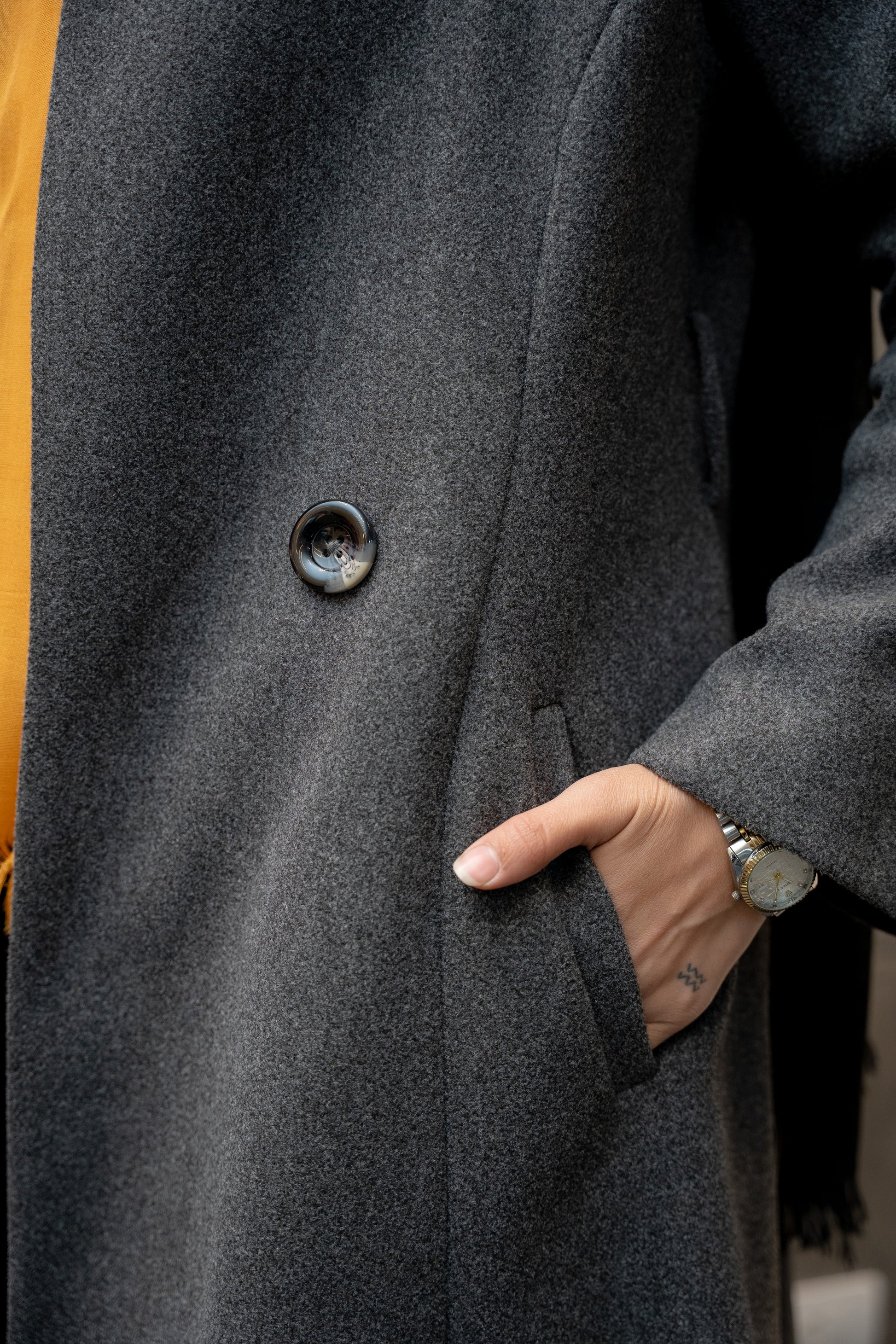 A long, wide-cut coat designed to create an elegant and commanding silhouette. With a length of 122 cm, the coat offers a refined, elongated look that adds presence and sophistication to the overall outfit.